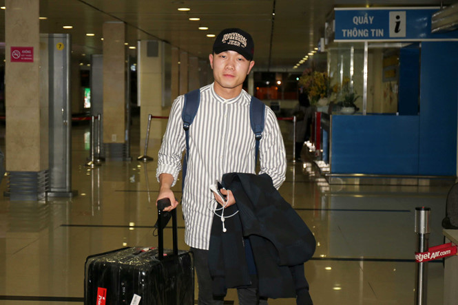 Thanh Niên cho hay xuất hiện tại sân bay Tân Sơn Nhất vào khuya ngày 1/2, đội trưởng U23 Việt Nam Lương Xuân Trường mặc áo sơ mi giản dị, đeo khẩu trang nhưng vẫn được khá nhiều người nhận ra.