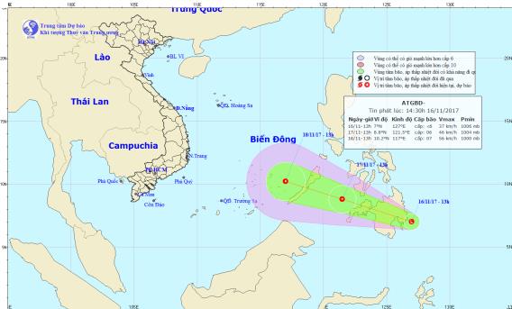 Đến 13 giờ ngày 17/11, vị trí tâm áp thấp nhiệt đới ở vào khoảng 8,8 độ Vĩ Bắc; 121,5 độ Kinh Đông, trên khu vực miền Nam Philippines, cách đảo Palawan khoảng 270 km về phía Đông Đông Nam. Sức gió mạnh nhất ở vùng gần tâm áp thấp nhiệt đới mạnh cấp 6 (40-50km/giờ), giật cấp 8.