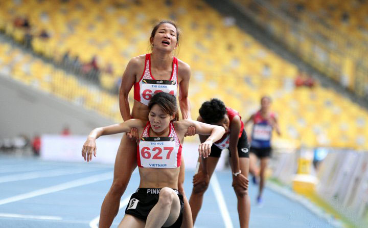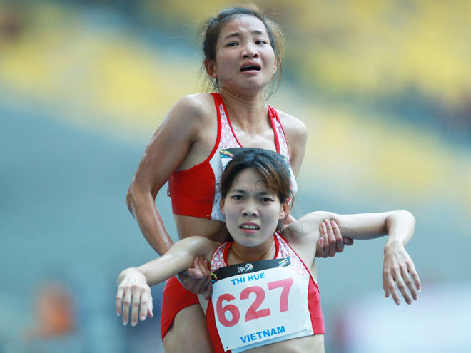 Phạm Thị Huệ sau khi vượt qua vạch đích nội dung chạy 5000 m đã gục xuống vì quá mệt. Nguyễn Thị Oanh lập tức chạy đến xốc dậy và dìu người đồng đội của mình cùng mừng chiến thắng tại SEA Games 29.