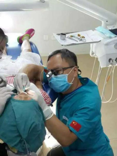 Nha sĩ Qu đã quỳ gối suốt trong vòng 40 phút để phẫu thuật cho một bệnh nhi. Ảnh nguồn: Shanghaiist |