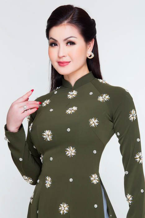 Yến Vy rạng rỡ chụp ảnh áo dài của NTK Minh Châu. |